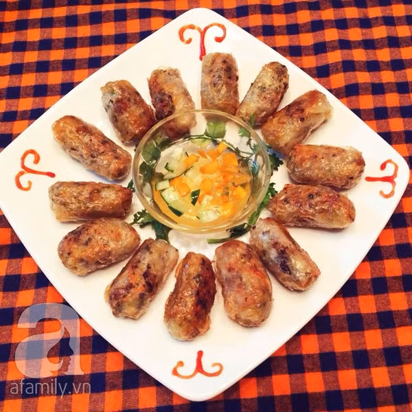 - Đun dầu sôi cho nem vào rán vàng.
