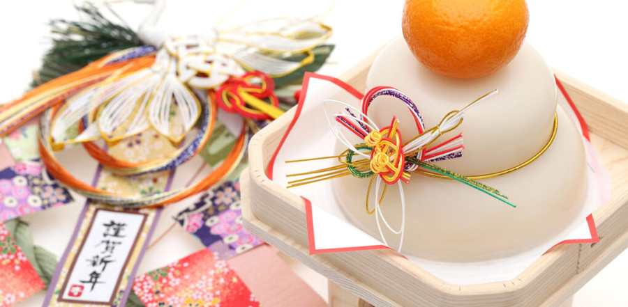 Kagami mochi (鏡餅) là đồ trang trí năm mới truyền thống thường bao gồm hai mochi tròn (bánh gạo), cái nhỏ hơn được đặt trên cái lớn hơn và một daidai (một loại cam đắng, như đã giải thích ở trên trong phần về shime-nawa). Bánh mochi được đặt trên một giá đỡ được cho là để tránh cháy nhà trong năm tới.