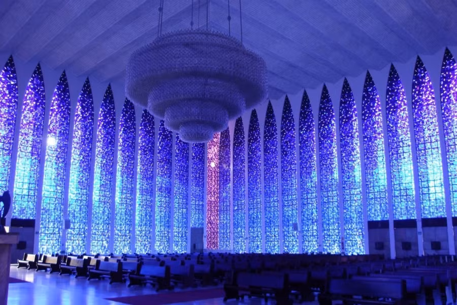 Có thể nói, nhà thờ Brasilla là niềm tự hào của đất nước Brazil, có sức chứa lên tới 4.000 người. Tuyệt tác này có mái bằng kính và khoảng cách giữa các cột bê tông được phủ đầy kính màu xanh và trắng. Ánh sáng mặt trời làm cho nhà thờ sáng tự nhiên.