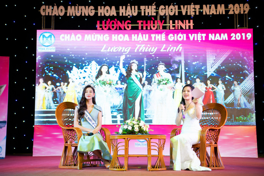 Hoa hậu Lương Thùy Linh giao lưu cùng khán giả.