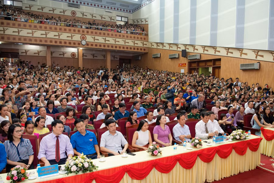Hoa hậu Lương Thùy Linh giao lưu cùng khán giả.