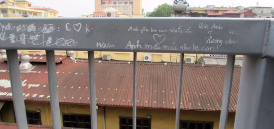 Điển hình như việc viết tên và lời nhắn dành cho nhau trên những cây cầu bộ hành, không những không đẹp mà còn thể hiện sự ý thức kém và gây mất mỹ quan đô thị.