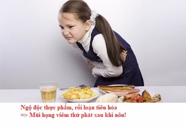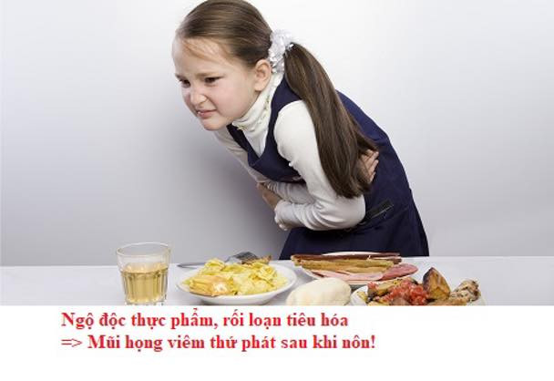 Đau rát họng, ngạt tắc mũi và ho… bắt nguồn từ ngộ độc thực phẩm. Mũi họng sẽ viêm thứ phát sau khi nôn.
