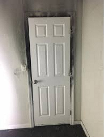 Sau đó, Sở cứu hỏa Cold Spring cũng đã chia sẻ lên Facebook bức ảnh về hình dạng một cánh cửa nhìn từ bên trong và bên ngoài. Trong khi bên ngoài cánh cửa bị đen và cháy sém, mặt khác, bên trong cánh cửa vẫn trắng và không bị hư hại.