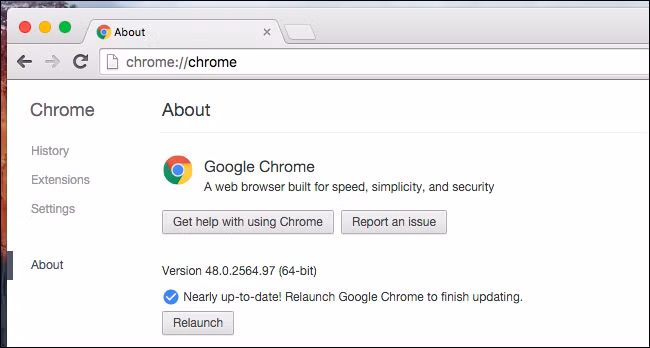 Nếu bạn không dùng máy tính Windows mà sử dụng Mac hoặc Linux, nhiều khả năng bạn đang sử dụng phiên bản 64-bit của Chrome mà không cần phải lo nghĩ gì. Đó là bởi, kể từ phiên bản Chrome 39 ra mắt năm 2014, trình duyệt này chỉ còn phiên bản 64-bit trên Mac OS X (bản 32-bit đã bị loại bỏ). Bởi vậy, trừ khi đang dùng một chiếc Mac quá cũ, nếu không bạn đang chạy Chrome 64-bit của Google.