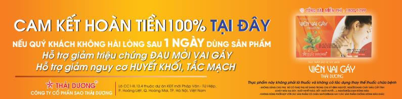Về sản phẩm viên vai gáy Thái Dương, Công ty Cổ phần Sao Thái Dương đang có chương trình cam kết khẳng định chất lượng, hoàn tiền 100% nếu khách hàng không hài lòng sau ngày đầu tiên sử dụng.