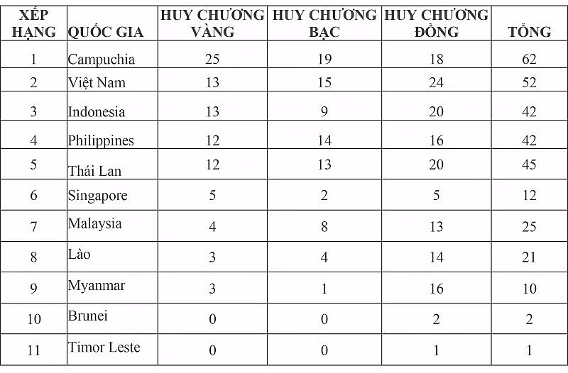 BẢNG TỔNG SẮP HUY CHƯƠNG SEA GAMES 32 – NGÀY 7/5: