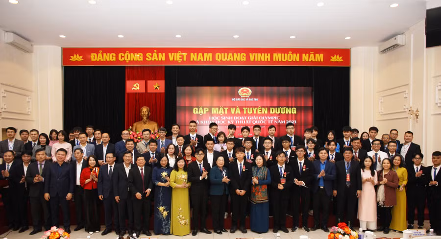 Trước đó, chiều ngày 15/12, Phó Chủ tịch nước Võ Thị Ánh Xuân đã gặp mặt, tuyên dương đoàn học sinh đoạt giải các kỳ thi Olympic và Khoa học kỹ thuật quốc tế năm 2023. Sáng ngày 16/12, Bộ GD&ĐT tổ chức cho đoàn học sinh tham dự lễ báo công trước Lăng Chủ tịch Hồ Chí Minh, thăm Văn Miếu - Quốc Tử Giám.