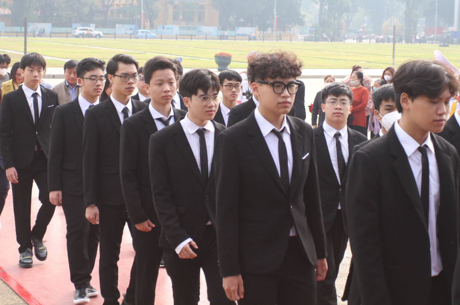 | Bốn học sinh đạt Huy chương Vàng Olympic Hóa học quốc tế năm 2022 vui mừng được tham dự Lễ báo công dâng Bác. |