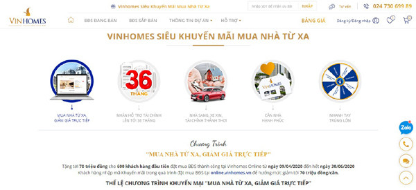 Nhân dịp ra mắt, sàn thương mại điện tử Bất động sản Vinhomes Online áp dụng chương trình ưu đãi đặc biệt “Mua nhà từ xa, giảm giá trực tiếp” cho 600 giao dịch đầu tiên thành công tại các dự án Vinhomes Ocean Park, Vinhomes Smart City và Vinhomes Symphony. Mức giảm từ 10 - 70 triệu/căn, trong đó, 100 căn đầu tiên được giảm giá đến 70 triệu đồng.