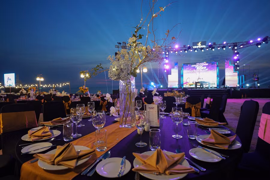 Những đêm gala, biểu diễn trong nhà đầy màu sắc hay những trò chơi team building cực kỳ năng động, trở thành kỷ niệm đặc biệt trong không gian sang trọng, thơ mộng, chan hòa với thiên nhiên. Sau những giờ hội họp nghiêm túc, sẽ không còn gì tuyệt vời hơn khi du khách đắm chìm trong những buổi tiệc lãng mạn bên bờ biển hay thử thách bản thân với những môn thể thao dưới nước không kém phần năng động.