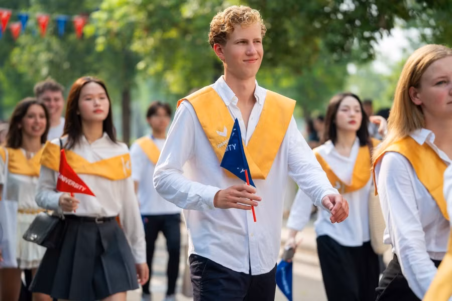 Lễ Khai giảng với chủ đề “Bứt phá để dẫn đầu” chào đón hơn 700 tân sinh viên, trong đó có 37 sinh viên quốc tế. Sự hiện diện ngày càng đông đảo của sinh viên quốc tế đến từ 35 quốc gia và vùng lãnh thổ, chiếm 5% tổng số sinh viên đã khẳng định VinUni đang từng bước trở thành điểm đến uy tín đối với sinh viên toàn cầu. Dự kiến trong năm học này, VinUni còn đón 600 sinh viên quốc tế ở bậc đại học và sau đại học tới học tập thông qua các chương trình trao đổi sinh viên và hợp tác quốc tế.
