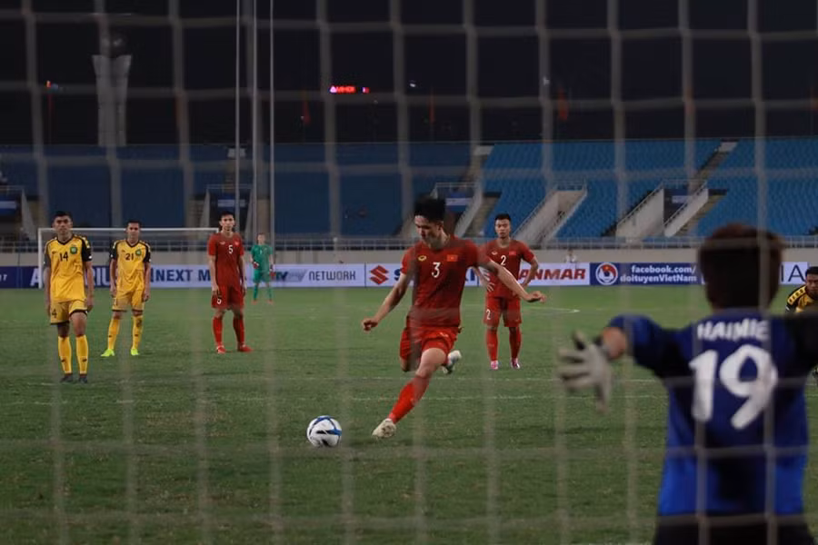 | Phút thứ 11 của trận đấu Đức Chinh ghi bàn cho tuyển U23 Việt Nam ở vòng loại giải châu Á ở ngay cơ hội đầu tiên. Đội khách Brunei chủ động chơi phòng ngự số đông nhưng vẫn bất lực trước pha dàn xếp tấn công hiệu quả của Việt Nam. |
