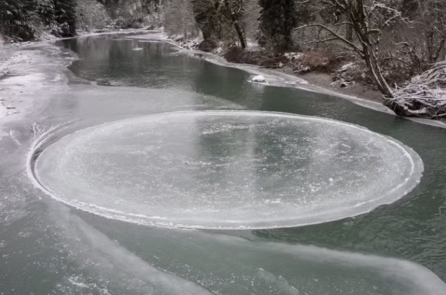 Hiện tượng vòng băng xuất hiện trên sông hồ như thế này rất ít khi xảy ra.