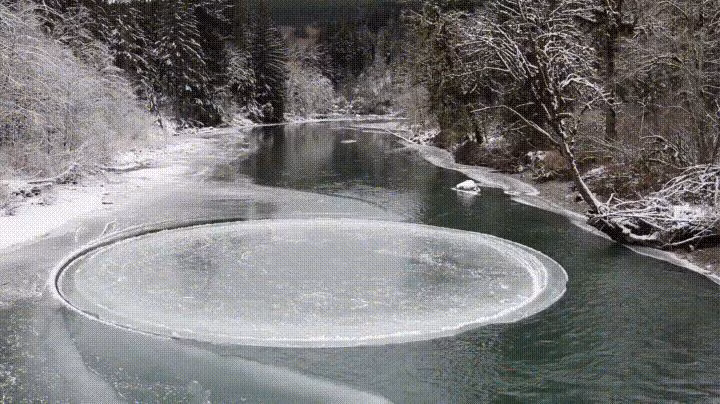 Các tảng băng trôi nổi này sẽ bị cuốn vào xoáy nước, khi càng nhiều băng bị cuốn vào xoáy nước thì sẽ hình thành một vòng băng đặc dưới hình dạng đĩa tròn hoàn hảo.