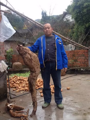 Một người dân Trung Quốc đào được củ sắn dây rừng dài 1,4 m, đường kính chỗ lớn nhất là 72 cm, hình dạng giống chân người ở thành phố Đạt Châu, tỉnh Tứ Xuyên.