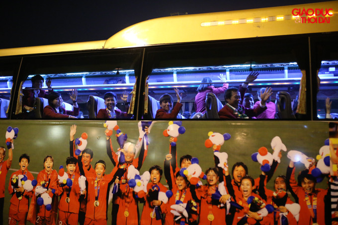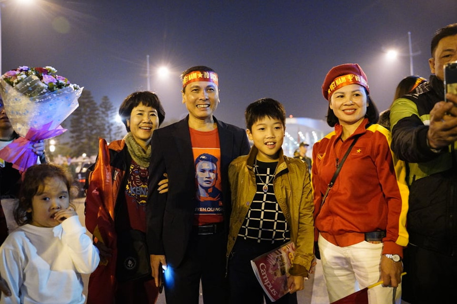 Vào lúc 19h15 hôm nay, chuyên cơ chở Đoàn thể thao Việt Nam từ Manila đã về tới sân bay Nội Bài. Lúc này, ở trước cổng sân bay, hàng ngàn CĐV đang rất hồi hộp chờ được đón sự xuất hiện của những người hùng.