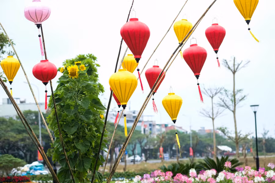 | Bên cạnh đó, dịp Tết Nguyên đán Quý Mão, khu vực này cũng được bố trí các tiểu cảnh mang đậm bản sắc Tết truyền thống như mô hình xe lam và xe xích lô chở hoa, mái tranh xưa, đôi câu đối đỏ, cặp bánh chưng - bánh tét… Ảnh: Hoàng Vinh. |