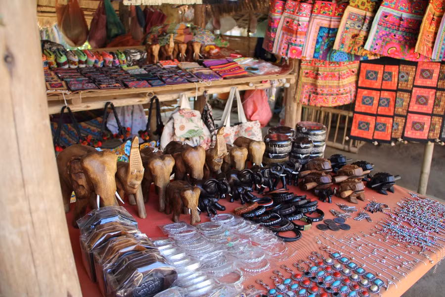 | Sản phẩm lưu niệm được bày bán ở một quầy hàng. |