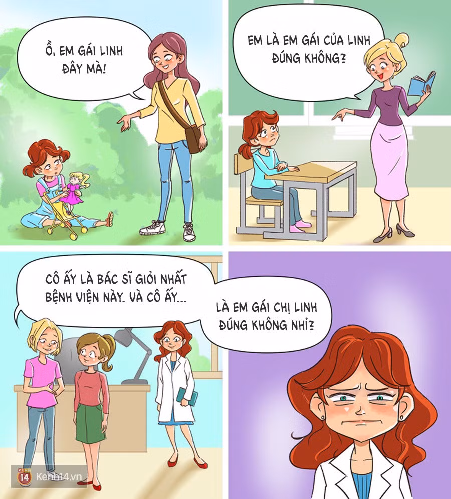 Thế nhưng có một bà chị thực ra cũng tuyệt lắm, bạn sẽ có người để chia sẻ mọi thứ, kể cả những bí mật nho nhỏ về chuyện con gái, về cậu bạn lớp bên... Nhà toàn chị em gái dễ cãi nhau, dễ đánh lộn nữa nhưng thực tế lại rất hạnh phúc.