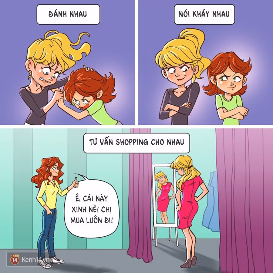 Và nếu bạn là một cô gái và có một bà chị hay một cô em thì chắc chắn bạn sẽ tìm thấy hình ảnh chị em bạn trong 12 tình huống dưới đây!