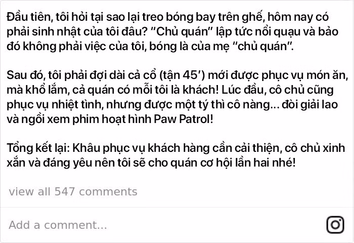 Khi mọi thứ đã xong xuôi, Chris liền đăng tải bài review của mình lên Instagram để cảm ơn bữa ăn ngon miệng mà cô con gái bé nhỏ dành cho mình. Và bài review này đã khiến cư dân mạng cười gần chết, ngay lập tức!