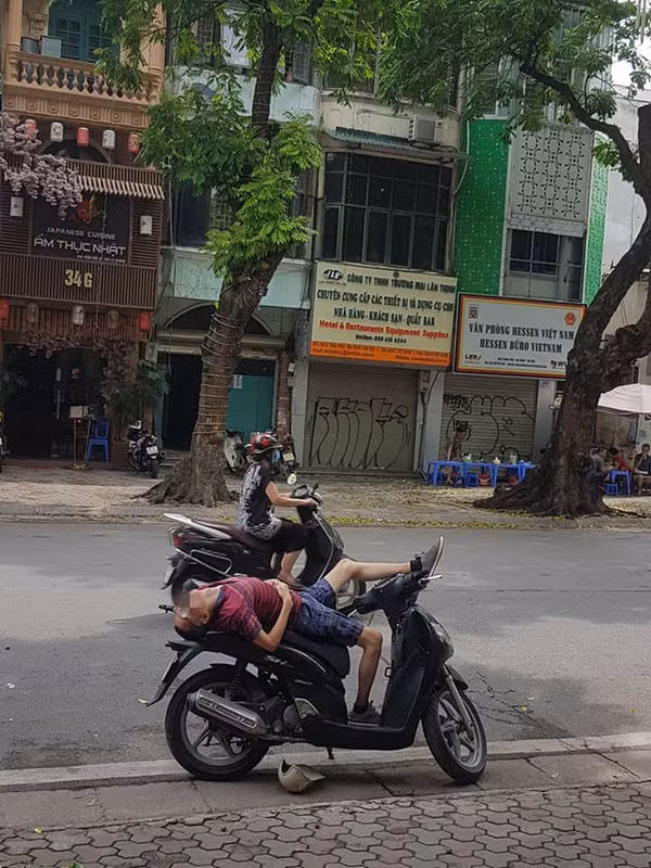 Mới đây, mạng xã hội đang chia sẻ những hình ảnh ghi lại cảnh 1 người đàn ông không hiểu vì lý do gì lại dựng xe trên lề đường, nằm ngủ với tư thế lạ trên chiếc xe máy.