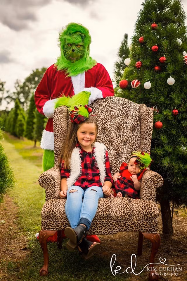 Nhìn thì có vẻ mọi chuyện rất yên bình, nhưng thật ra, đây là "cái bẫy". Trong khi những đứa trẻ ngồi ghế để chụp ảnh chân dung, thì một người trong bộ đồ Grinch màu xanh lá cây, bên ngoài khoác áo của ông già Noel bước ra để chào "những người bạn nhỏ", và những phản ứng của trẻ được ghi lại đầy đủ trong từng thước hình.