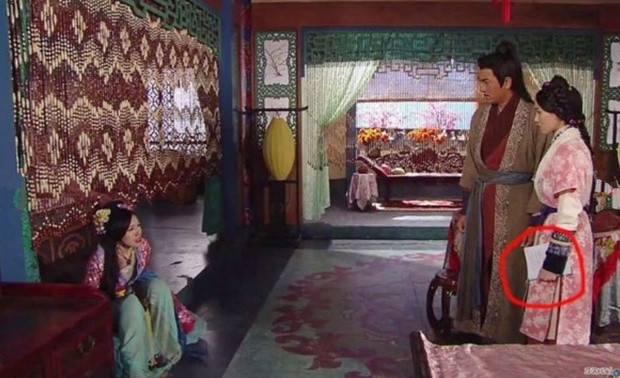 | Nữ diễn viên Lý Thi Vận cầm kịch bản lọt vào ống kính trong Hàn Sơn Tiềm Long. "Dường như các nhân vật đều say mê diễn xuất nên không ai để ý hạt sạn lớn như vậy vẫn được chiếu trên màn ảnh" - một độc giả bình luận. |