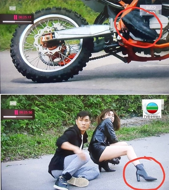 | Trong phim Những người tôi từng yêu, nữ diễn viên bị dính bẩn trên áo nhưng ngay sau đó, vết bẩn biến mất. Lỗi này nằm ở quá trình cắt ghép thứ tự cảnh quay. Tương tự Trần Hào bị ném trứng thối trong phim Những kẻ ba hoa nhưng vết ném lúc bên trái, lúc bên phải dù trong một cảnh quay. Những lỗi này khá sơ đẳng nhưng xuất hiện nhiều trong các tác phẩm truyền hình của TVB. |