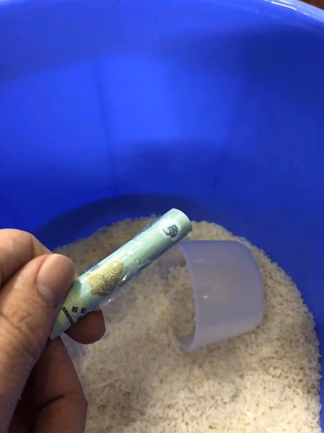 Nhiều cư dân mạng phát hiện hạt gạo dính trên cuộn tiền trong lọ muối ớt