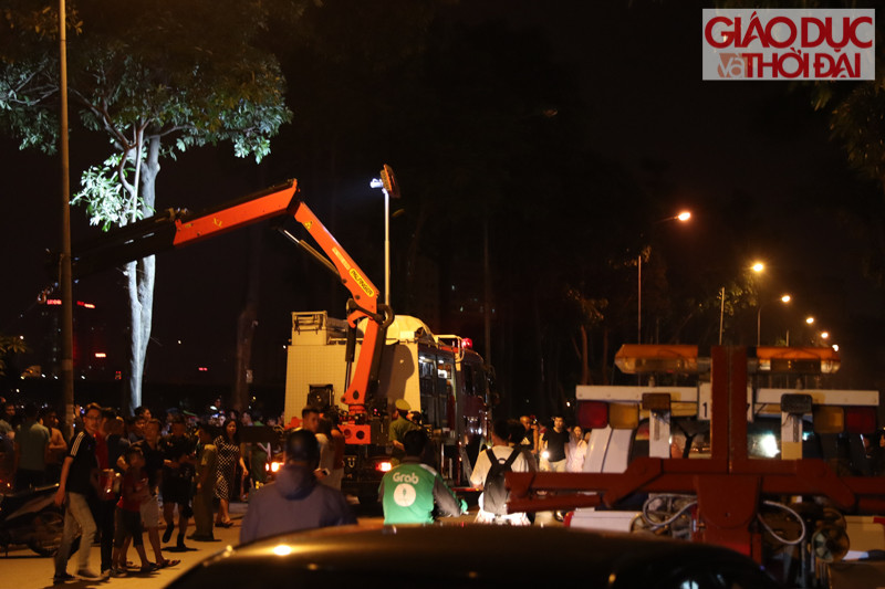 Hình ảnh trục vớt xe tại hồ Linh Đàm được PV GT&TD ghi lại: