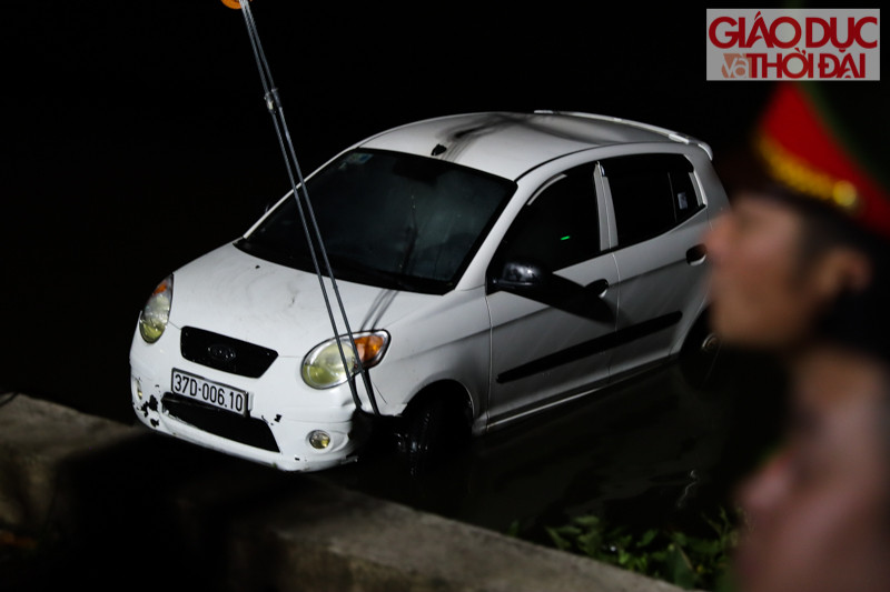 Đến 23h30 tối 1/5, chiếc xe đã được cẩu lên bờ. Bên trong xác định không có người. Được biết, đây là loại xe bán tải mang BKS 37D-006.10.