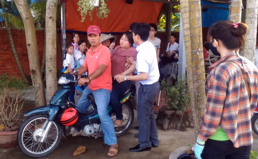Khi qua vòng xoay trên được một đoạn thì tài xế Chân bật đèn tín hiệu cho xe chuyển sang đường. Bất ngờ, lúc này phía sau có xe ô tô khách biển số 65N-2037 do tài xế Nguyễn Văn Bằng (54 tuổi, ngụ ở phường 4, TP Vĩnh Long) chạy hướng cùng chiều, tông vào phần sau của xe tải, cú va chạm mạnh đã làm hư hỏng nặng phần đầu của xe khách.