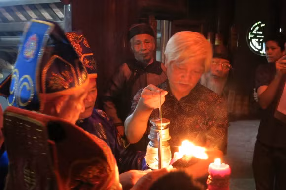 Sau khi thực hiện lễ cầu an, cầu phúc, cầu hòa bình, thịnh vượng, các đại biểu đã thực hiện nghi lễ xin lửa đúc Tượng Vàng Thánh Gióng, đồng thời giới thiệu các mẫu tượng vàng.