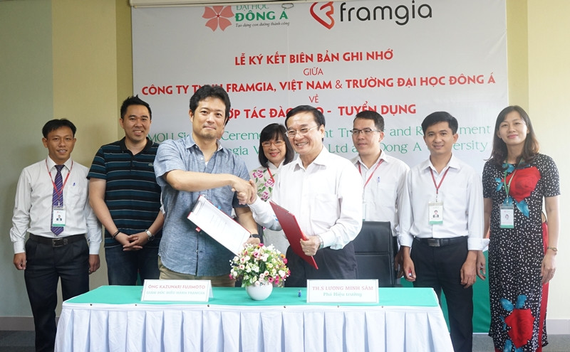 | Đại diện trường ĐH Đông Á và Framgia Việt Nam ký kết hợp đồng đào tạo và chuyển giao. |
