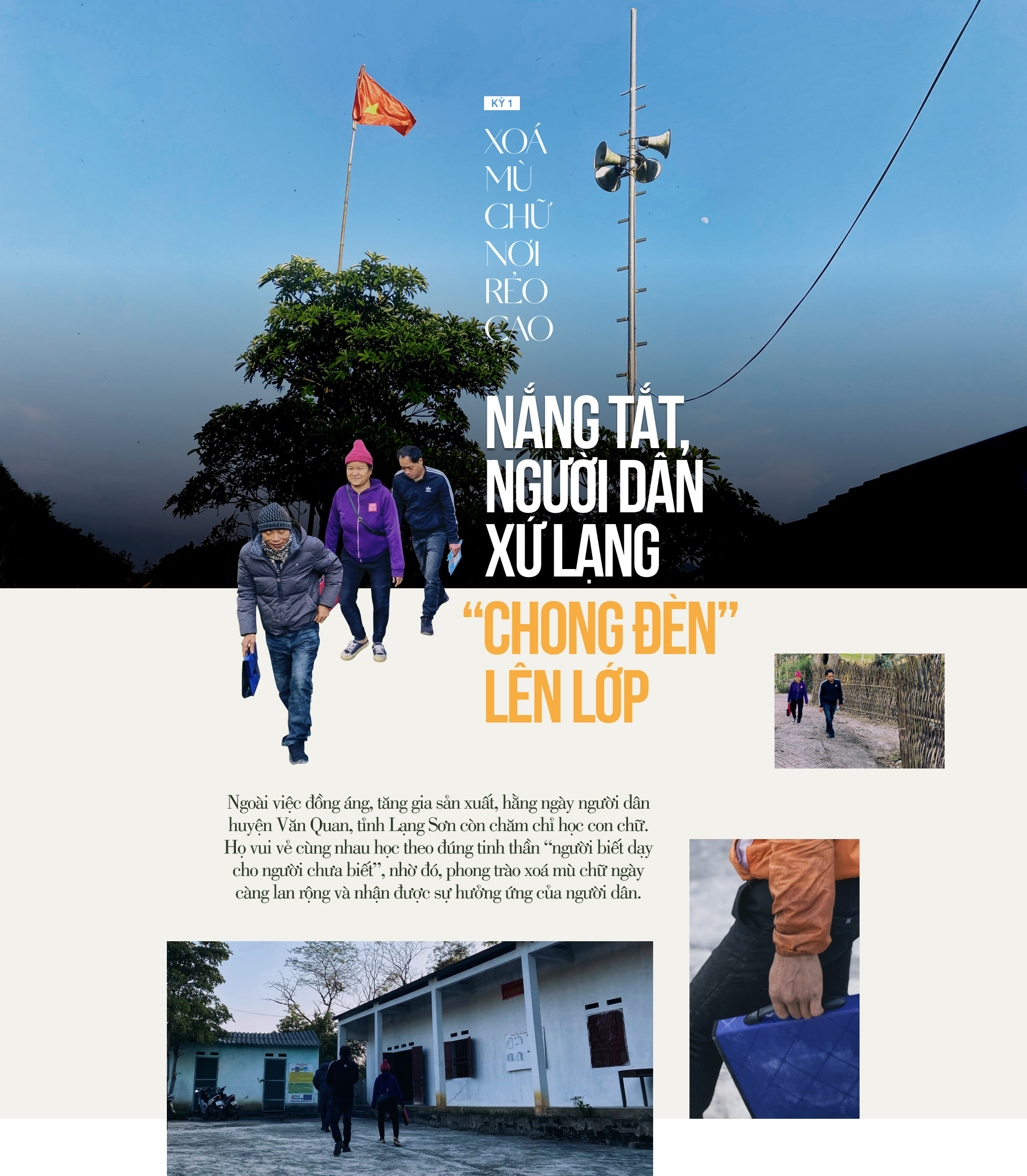 17 giờ chiều, khi sương xuống giăng trên các cành cây, tiếng cô Triệu Thị Tuyết (giáo viên Trường Tiểu học và THCS 1 An Sơn, huyện Văn Quan, tỉnh Lạng Sơn) cất lên quen thuộc, phá tan bầu không khí tĩnh lặng của núi đồi, báo hiệu một buổi học mới bắt đầu.