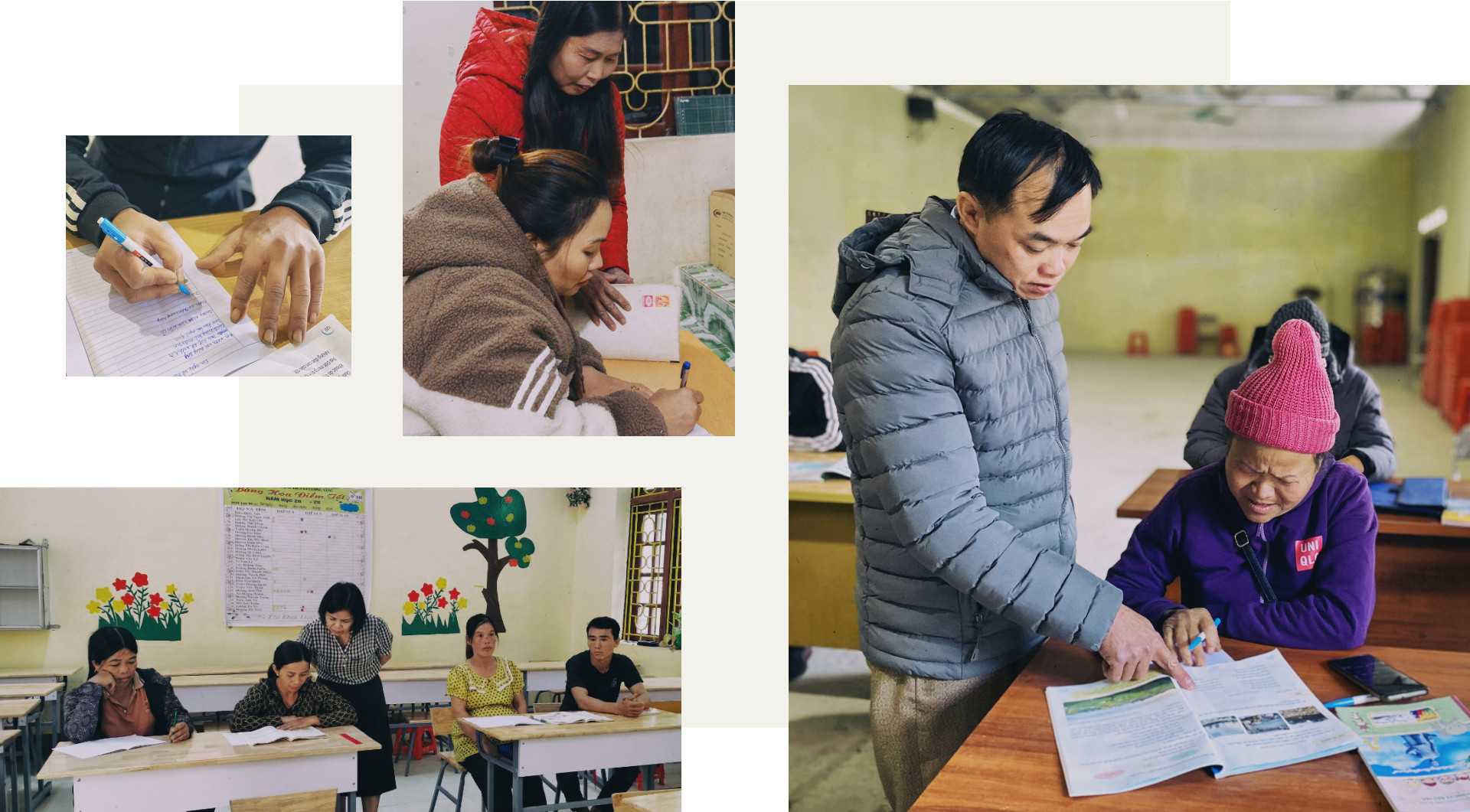 Mỗi ngày trôi qua, học viên lớp xoá mù chữ lại thêm thông thạo kĩ năng đọc, viết, tính toán cơ bản. Với cô Hồng như vậy là đủ, bởi chỉ khi biết con chữ, người dân mới có thể chủ động tìm hiểu các kỹ thuật mới vào sản xuất để nâng cao năng suất.