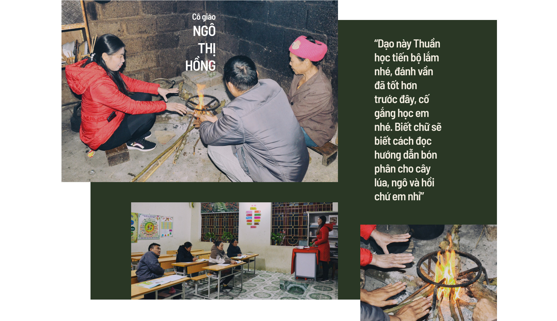 Thuần chỉ là một trong số rất nhiều học trò tại lớp xoá mù chữ do chính cô giáo Hồng trực tiếp giảng dạy. Nơi vùng cao này, ở cái tuổi mải làm ăn, kinh tế, vận động người dân đến lớp xoá mù chữ đã khó nhưng giữ chân họ ở lại, kiên trì với việc học còn là cả chặng đường gian nan gấp nhiều lần.