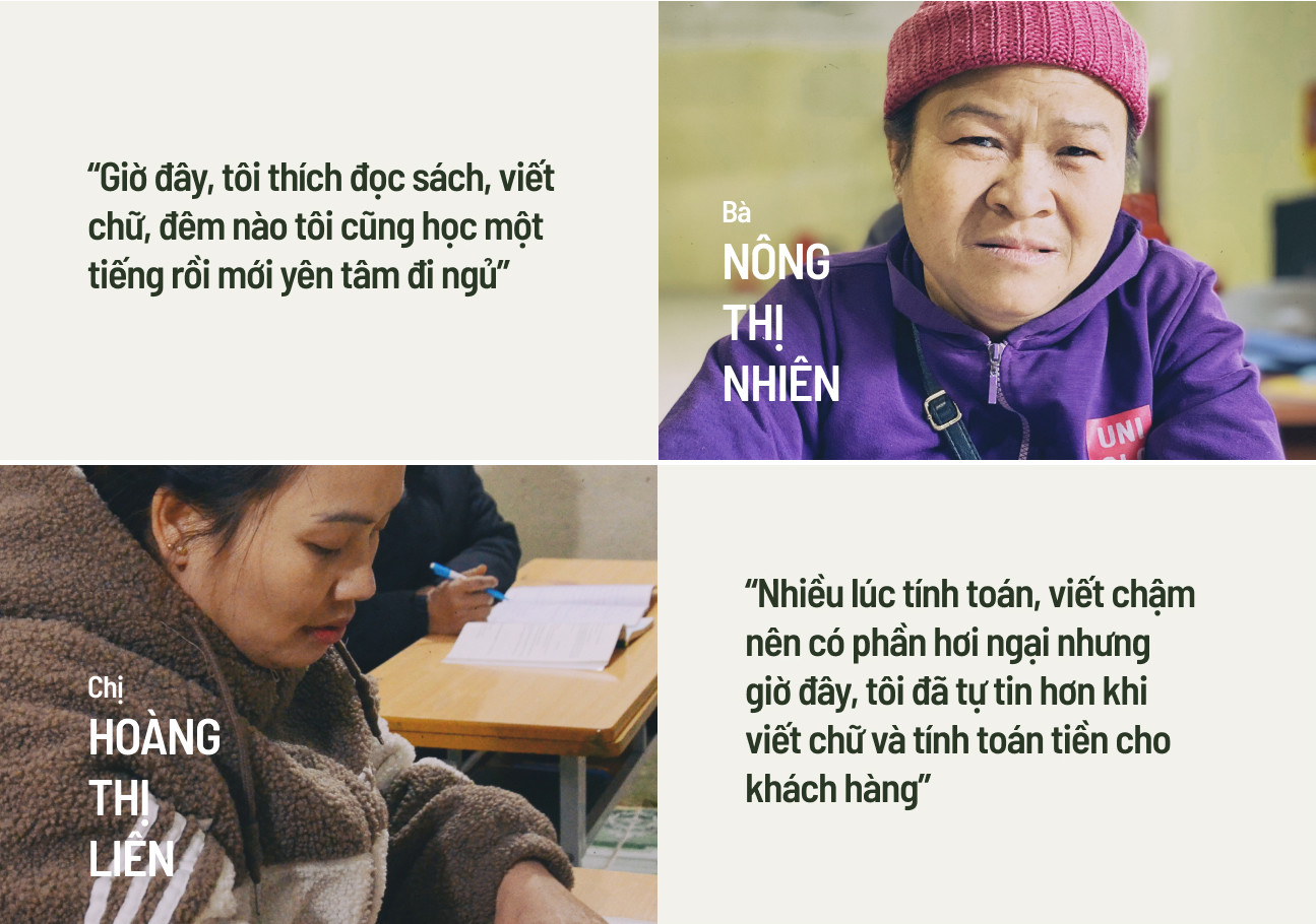 Cũng như chị Liên, từ ngày biết chữ, cuộc sống của bà Nông Thị Nhiên sinh năm 1968 (ở xã An Sơn, huyện Văn Quan, tỉnh Lạng Sơn) như bước sang trang mới. Thay vì chỉ quanh quẩn bên gian bếp, chăm lo cơm nước, lo việc đồng áng. Giờ đây, bà Nhiên có thể đọc chữ trên tivi, sử dụng điện thoại di động để nhắn tin, tìm kiếm thông tin, hay tự tin đi chợ phiên, trò chuyện, giao tiếp bằng tiếng phổ thông.