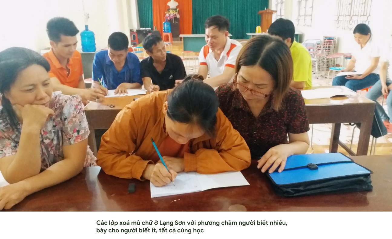 Song song với đó, Sở GD&ĐT Lạng Sơn chỉ đạo phòng GD&ĐT hướng dẫn các trung tâm học tập cộng đồng tổ chức tuyên truyền tới người dân trên địa bàn trong cuộc họp dân của thôn, xã, lồng ghép tuyên truyền trong các chuyên đề về phát triển kinh tế, tiếp cận hộ gia đình tuyên truyền về lợi ích của việc biết chữ, huy động người dân tham gia học tập.