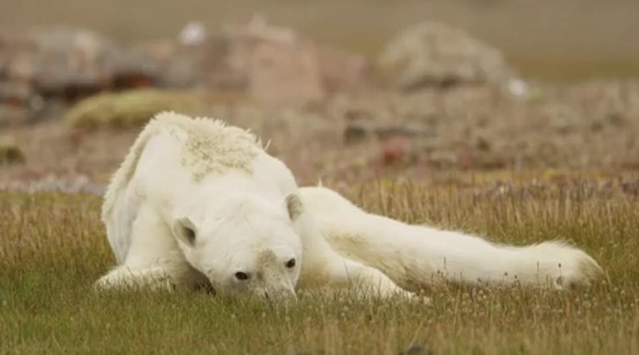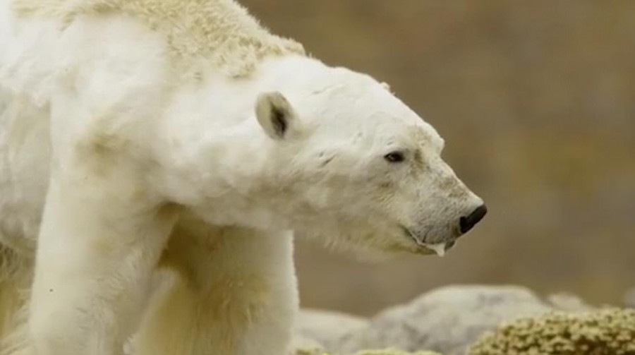 Do biến đổi khí hậu, băng tuyết đã tan hết và ảnh hưởng trực tiếp tới khả năng tìm kiếm thực phẩm của gấu bắc cực. Những chú gấu này chỉ dựa vào lớp băng tuyết để bắt con mồi bên dưới.