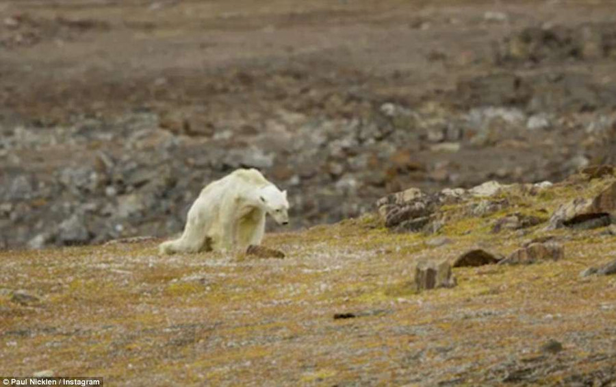 Một số hình ảnh về chú gấu bắc cực đang lê lết tìm thức ăn: