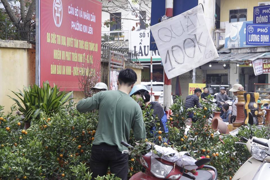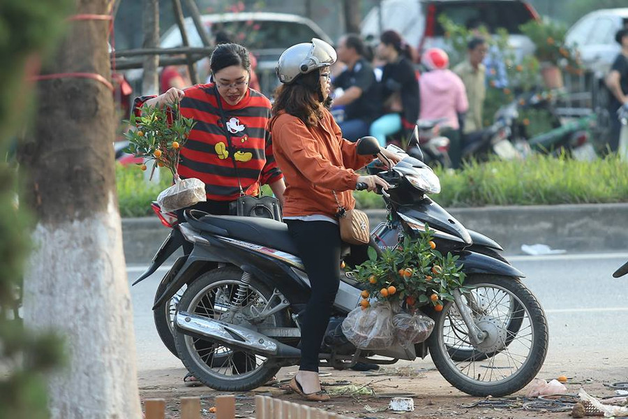 | Người mẹ đang chăm chút cho cây quất đã bị người bán bỏ đi. |
