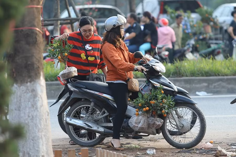 | Người mẹ đang chăm chút cho cây quất đã bị người bán bỏ đi. |