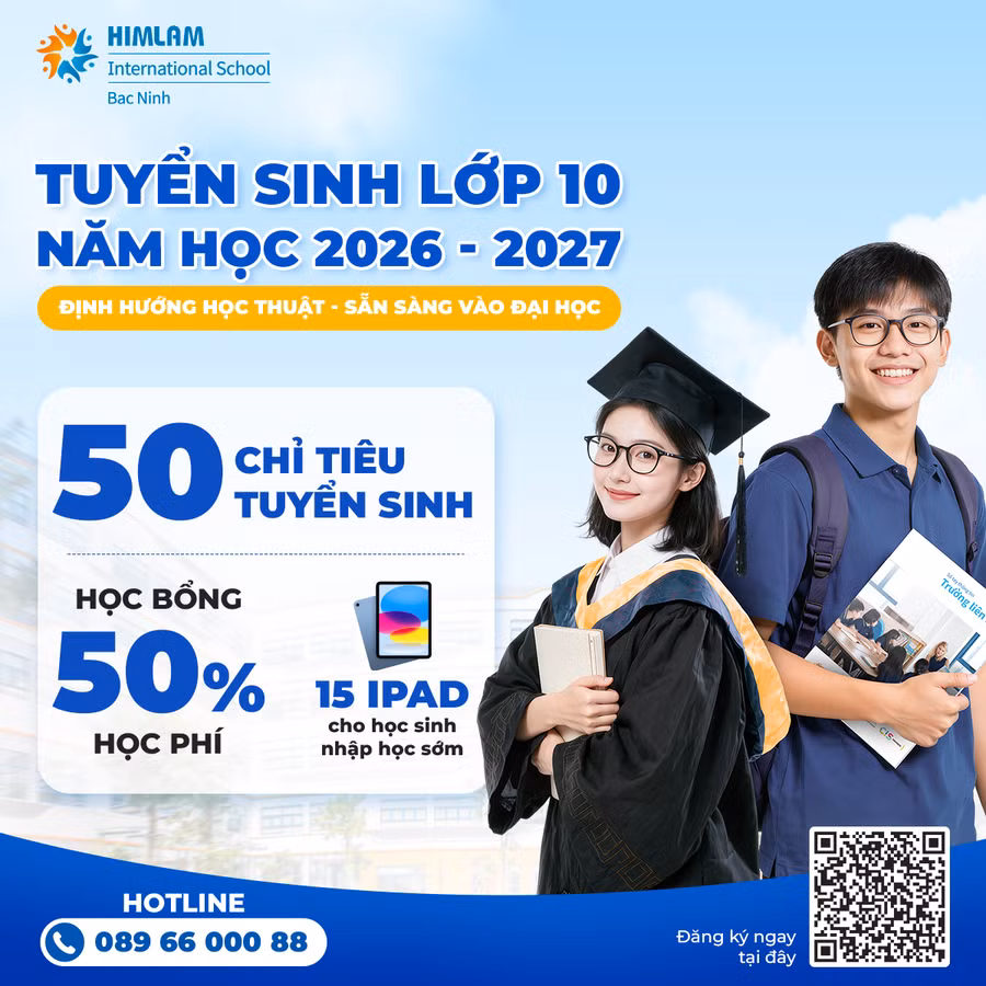 Năm học 2026-2027, Trường Quốc tế Him Lam Bắc Ninh tuyển sinh 50 học sinh lớp 10. Đồng thời, nhà trường triển khai quỹ học bổng tổng trị giá 5 tỷ đồng dành cho học sinh đạt thành tích học tập tốt và có tiềm năng phát triển trong môi trường học tập quốc tế.