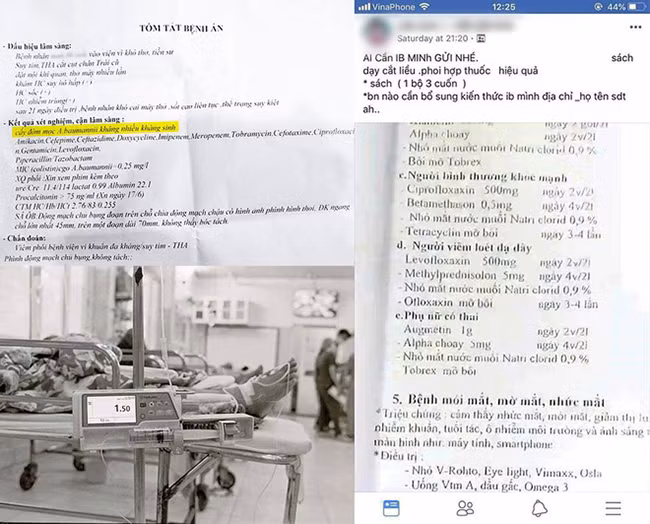Bệnh nhân đa kháng thuốc và 1 danh sách thuốc các mẹ tự làm bác sĩ truyền tay nhau trên một group bỉm sữa, có đầy kháng sinh và corticoid trong đó. (Ảnh: BS Ngô Hùng)