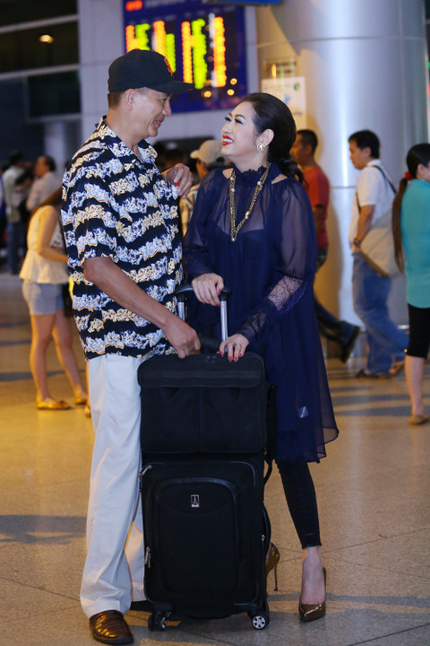 "Những lần chồng tranh thủ bay về VN thăm vợ thường đi taxi về khách sạn vì Ý Lan bận lịch diễn. Tranh thủ lần này, vừa quay hình chuẩn bị cho liveshow của mình xong, Ý Lan tức tốc ra sân bay đón chồng.