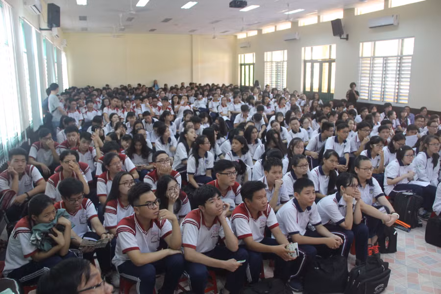 Có mặt tại hội trường, HS của Trường THPT Trưng Vương tỏ ra rất hào hứng bởi đây là lần đầu tiên các em được tham gia một phiên tòa, hình dung được các phần tại tòa án.