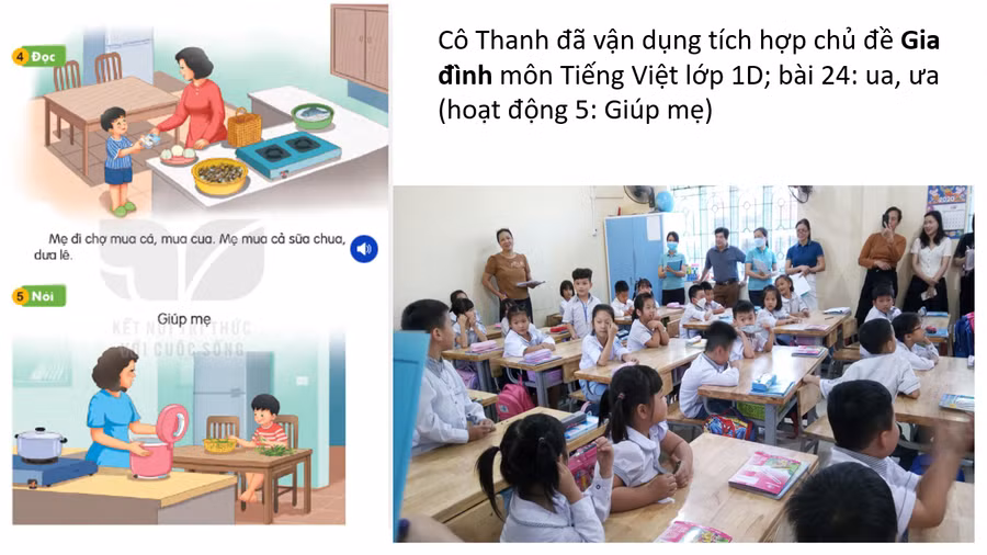Trong quá trình giảng dạy, Giáo viên của trường đã chủ động, sáng tạo trong việc xây dựng và thực hiện kế hoạch giáo dục gắn hoạt động học tập với thực tế địa phương; linh hoạt thay thế một số hình ảnh trong sách giáo khoa bằng những hình ảnh thực tế của nhà trường, phụ huynh, học sinh,…để các em cảm thấy bài học thật gần gũi thân quen. Đó cũng được xem là nghệ thuật của người thầy khi tạo hứng thú cho học sinh bằng cách đưa cuộc sống vào bài học, Kết nối tri thức với cuộc sống.